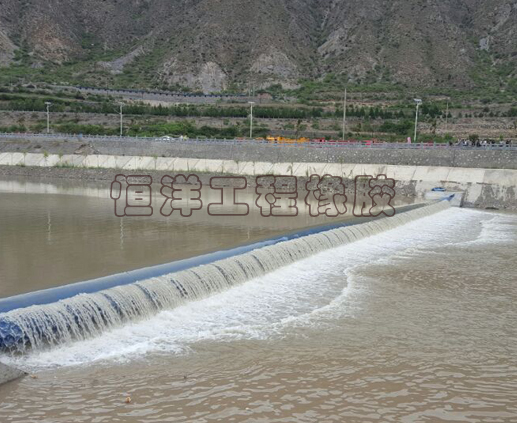 充氣式橡膠壩:以空氣為充填介質(zhì)的柔性擋水活動(dòng)壩。分書脊式充氣壩,擾流式充氣壩。與充水橡膠壩的區(qū)別: